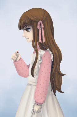 大きなバグも落ち着いて、ちょっと気持ちに余裕が出てきました。 感想なんかも頂けて喜んでます。ありがとう御座います。 ところで今度は、バージョン1.02までの実況動画等を見てプレイしてくださっている方からのお問い合わせが何件か。 1.02までは用意していた、エンド1への救済措置がないことで混乱させてしまっているようで。 しまった…完全に盲点でした。申し訳ない。 テントウムシを捕まえてちょっとご機嫌なココ。