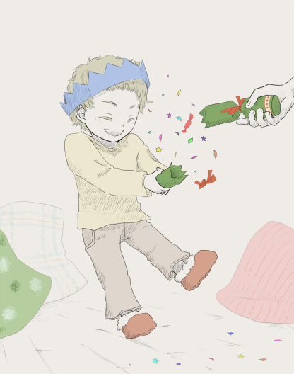 家族とクリスマスクラッカーで遊ぶチビ。多分2個目。